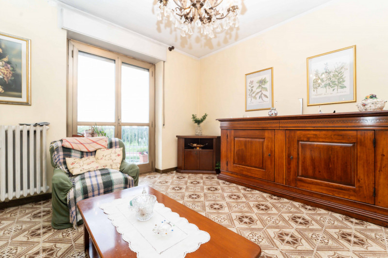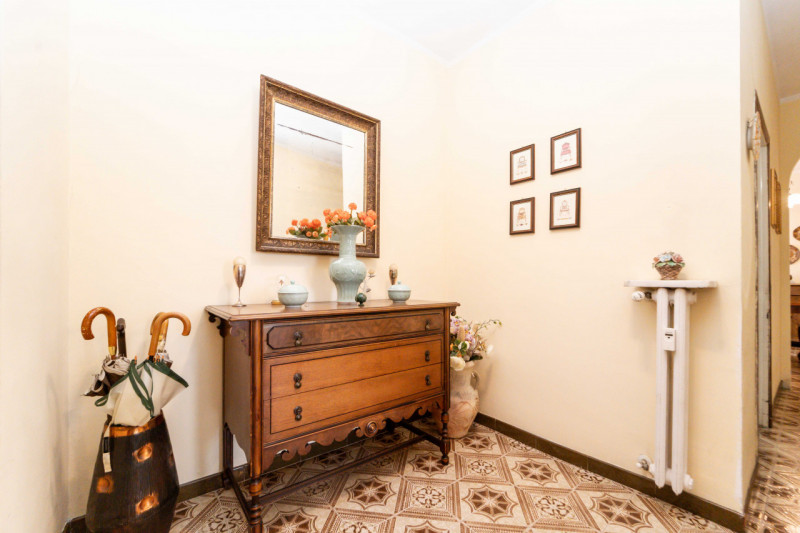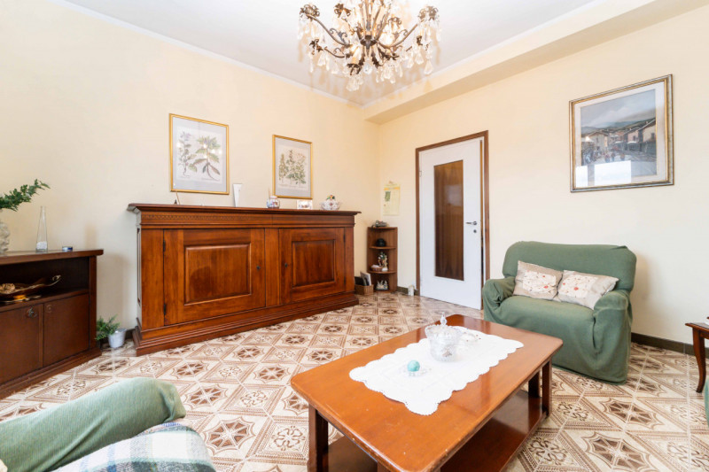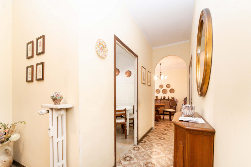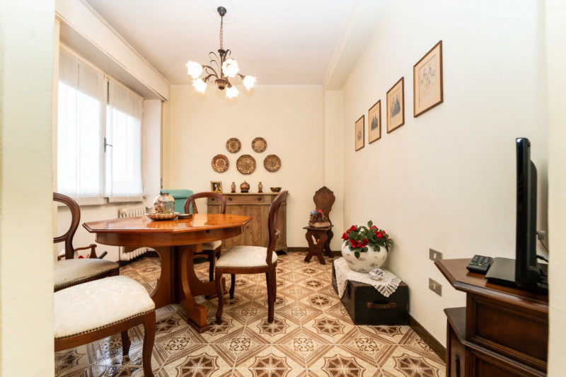 La disposizione interna prevede un ingresso accogliente che conduce ad un elegante salone, una sala da pranzo separata e una cucina abitabile; la zona notte ospita due camere da letto spaziose e silenziose, servite da doppi servizi finestrati.